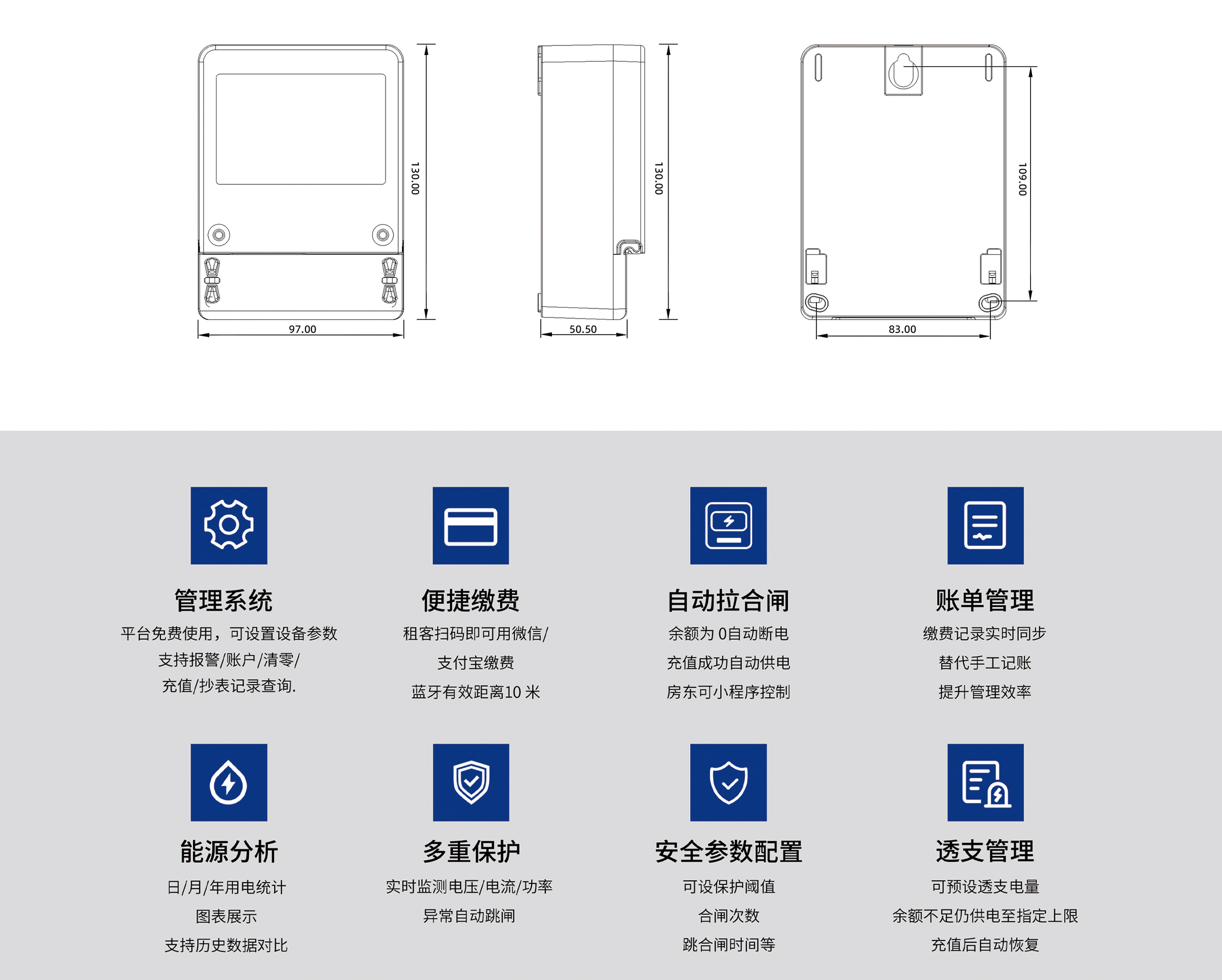 本产品运用先进的单片机处理系统,实现数据的采集、处理与存储。替换传统 IC 卡预付费电表,采用蓝牙通信功能,能够通过蓝牙与手机连接...